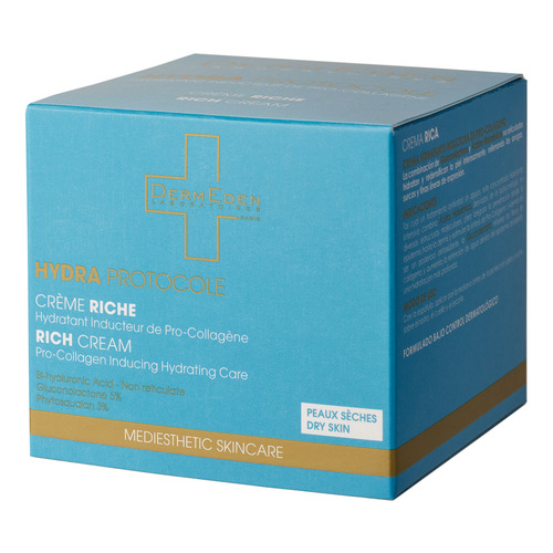Tratamiento hidratante PRO- Colágeno para piel normal a seca, que rehidrata y redensifica la piel, rellenando arrugas y finas líneas de expresión. Esta crema anti edad hidratante intensiva combina ácidos hialurónicos derivados de la biotecnología, bajo varias estructuras moleculares (3.25%), para garantizar la penetración desde la epidermis hasta la dermis y estimular la síntesis de Pro-Colágeno I. Contiene 5% de gluconolactona que además de ser un poderoso antioxidante, fortalece estas fibras de colágeno y aumenta la retención de agua en el corazón de la epidermis para una hidratación antienvejecimiento avanzada.