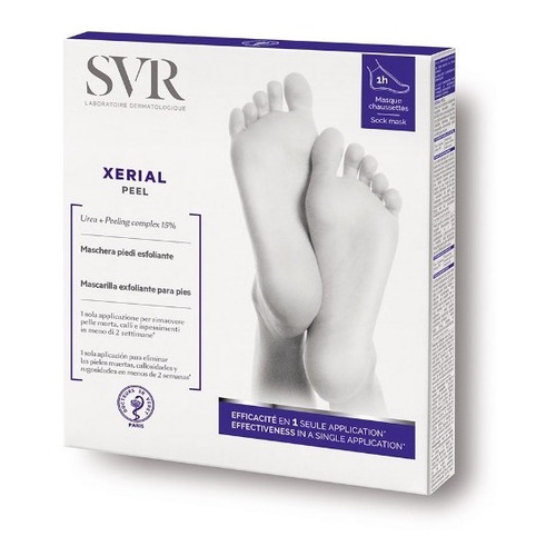 ¡Tu pie como nuevo con XERIAL Peel, nuestra mascarilla en forma de calcetín exfoliante e hidratante! Alta concentración en ingredientes activos queratolíticos y emolientes. Se concentra en las zonas rugosas y engrosadas del pie y preserva las zonas sensibles.